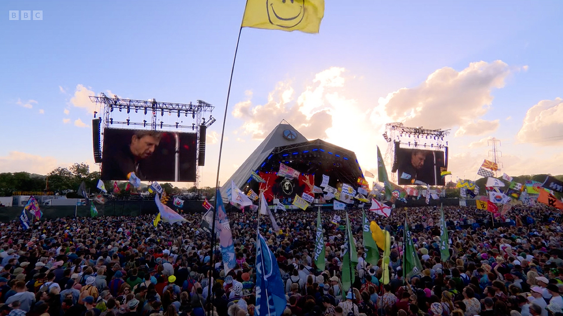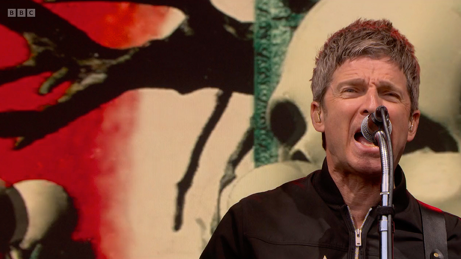 Video screen for Noel Gallagher's High Flying Birds Glastonbury 50th anniversary set on the main pyramid stage. Using a heavy mix of rotoscoped footage, crushed and punked up with analogue mark-marking against ultra punchy neon colours. Projected on Glastonbury's epic 18m x 10m screen. 1 of 8 videos.