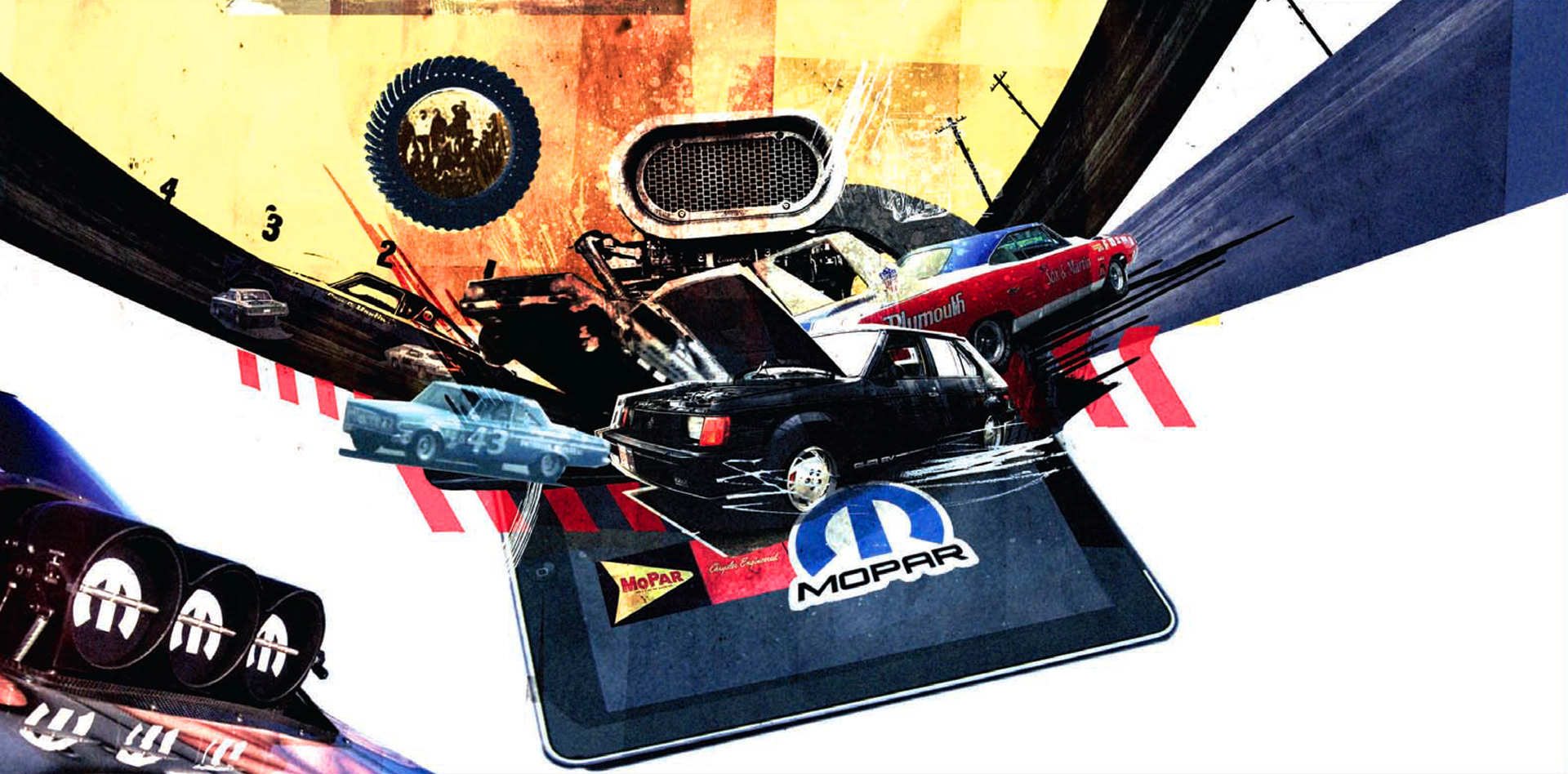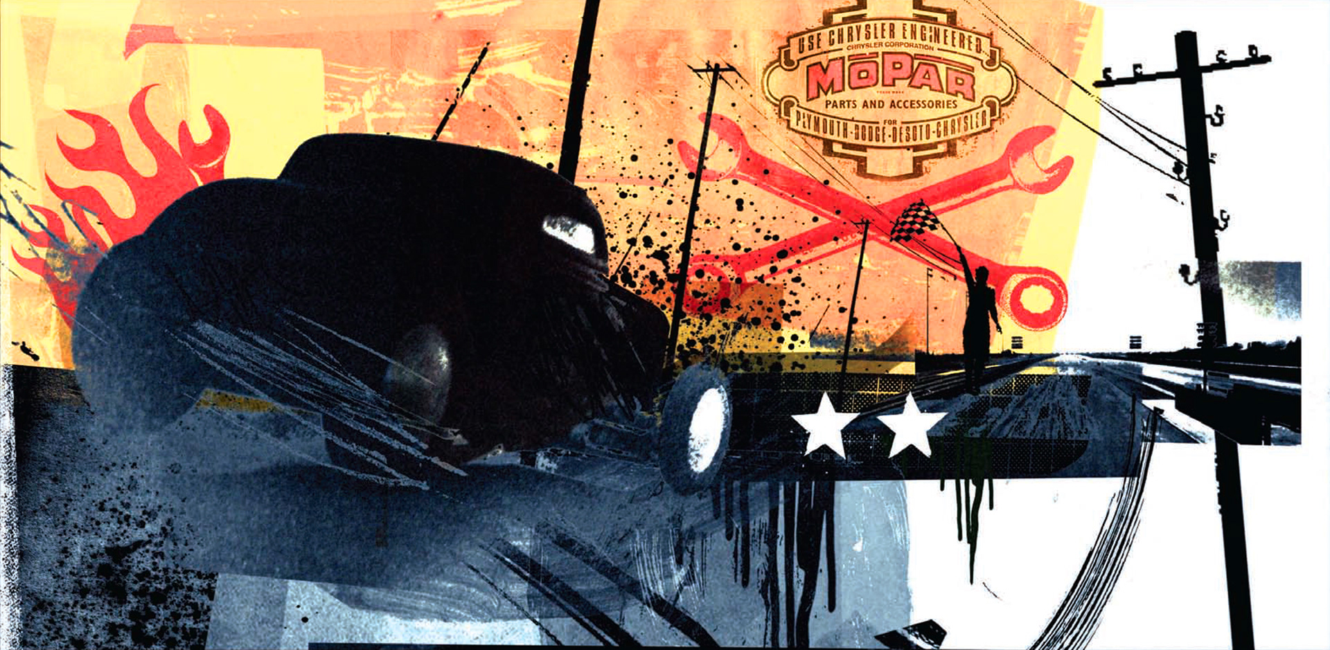 Celebrating Chrysler’s high performance car division and packing in 75 years of American muscle car action with a high energy mix of 2D, 3D & live action for Michigan based agency Union AdWorks.